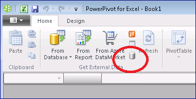 Open up the PowerPivot ribbon and click on the Get External Data from Other Sources.